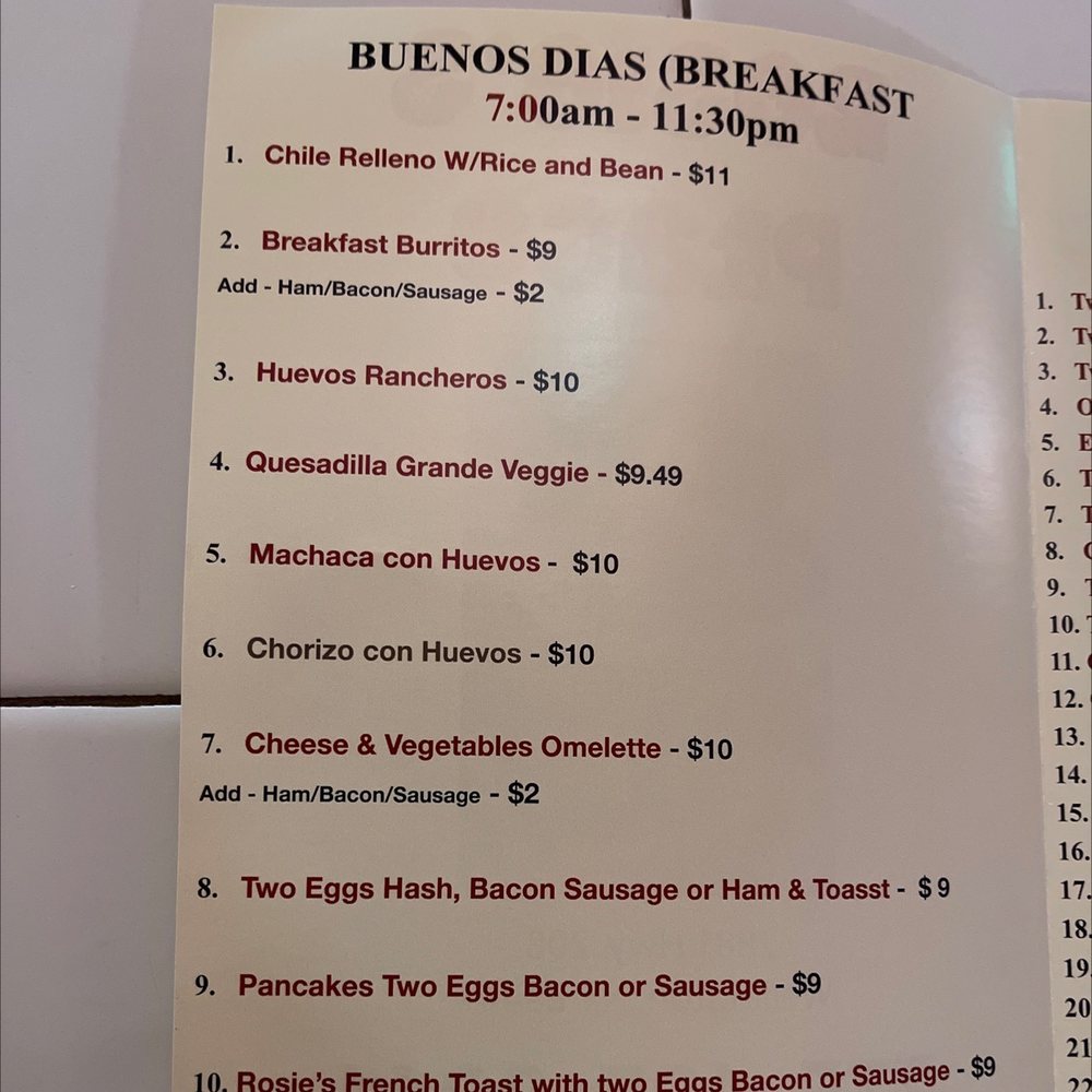 The menu boasts delightful options like chili verde and beef burrito plates filled with perfectly seasoned roast beef and served traditionally with rice and beans. With accommodating services like takeout, delivery, and outdoor seating, it's the perfect spot for a casual dining experience. Rosie’s attention to detail and love for cooking shine through in every dish, making it an ideal location for breakfast, lunch, or dinner.