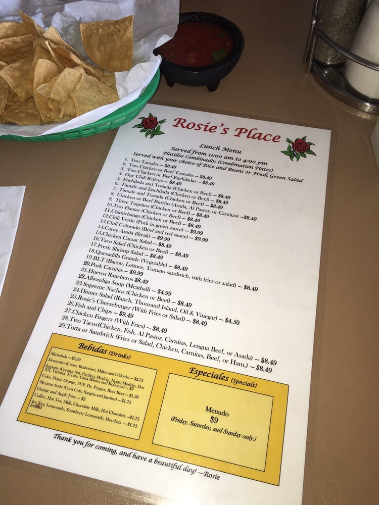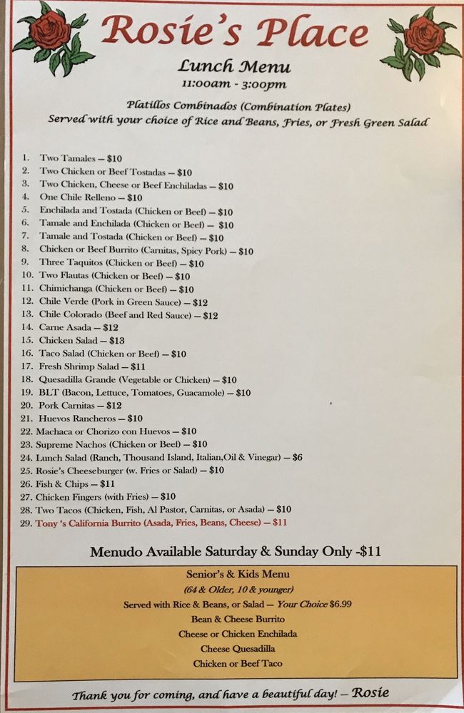 Rosie’s Place Menu